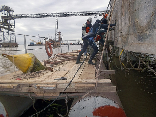 Mantenimiento de obras hidráulicas en la terminal de Nueva Palmira, Colonia.