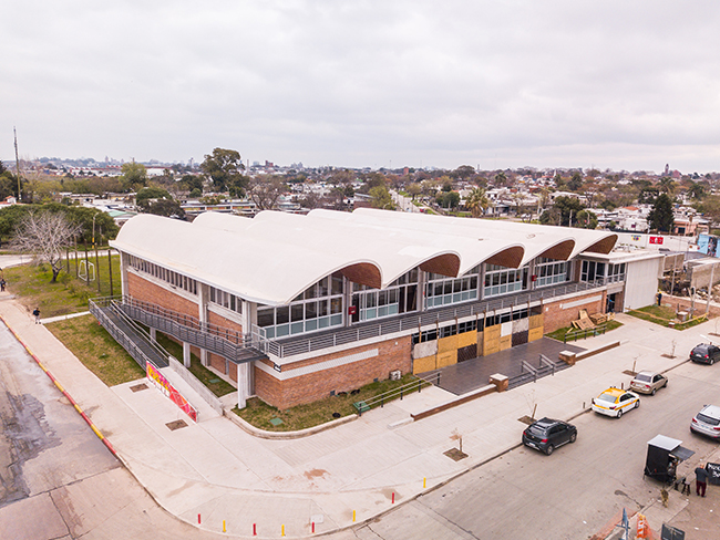 Gimnasio. Bóvedas de doble curvatura. Área cubierta 2.850m2. Trinidad, Flores.