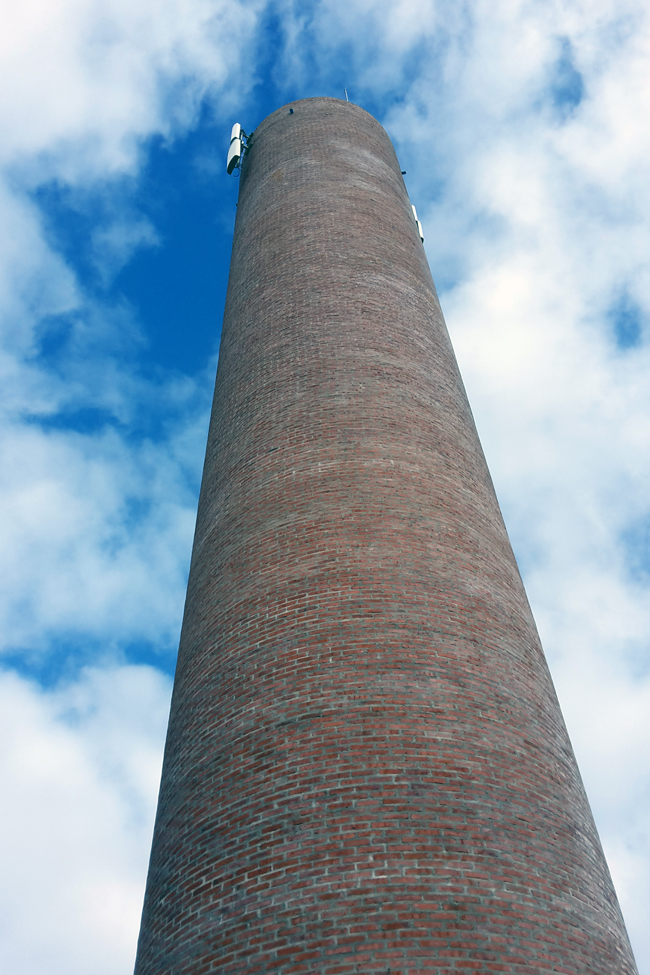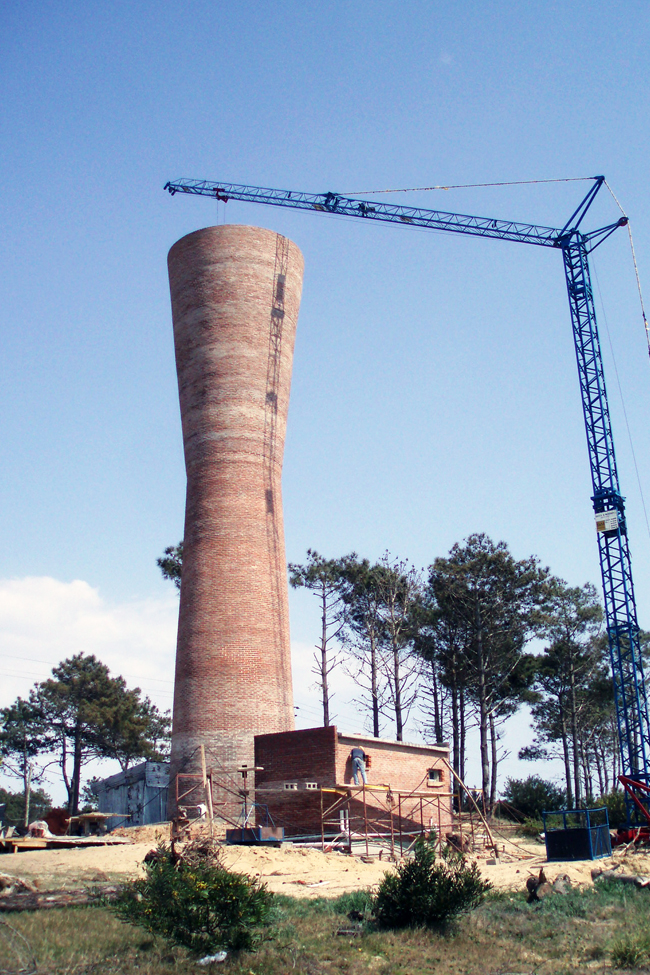 Torre de comunicaciones para televisión en ladrillo calado.